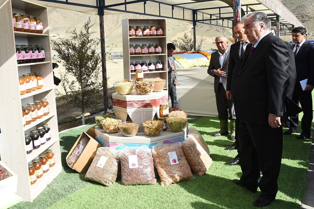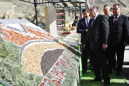 Дар ҳамин ҷо Пешвои миллат муҳтарам Эмомалӣ Раҳмон аз намоиши маҳсулоти кишоварзӣ ва таъомҳои миллӣ дидан карданд. Дар намоиш маҳсулоти гуногуни кишоварзӣ, аз ҷумла ғалладона, сабзавоту полезӣ, меваҷот, хушкмеваҳо, моҳӣ, асал ва маҳсулоти нонӣ муаррифӣ карда шуд, ки бозгӯи самараи меҳнати бобарору садоқатмандонаи аҳли заҳмати шаҳри Панҷакент мебошад.